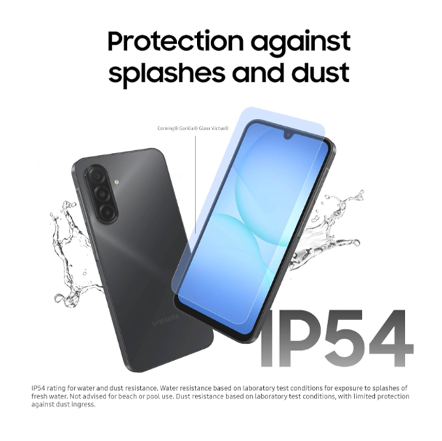 Built to go the distance, the Galaxy A17 5G features a thinner, lighter design that doesn’t sacrifice durability. With an improved IP54 rating for dust and splash resistance and expandable storage, it’s engineered to handle your life—and your memories—with ease.